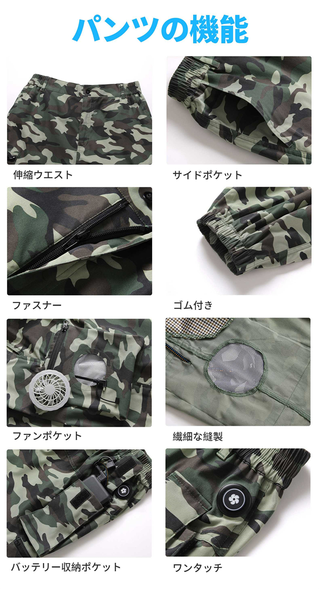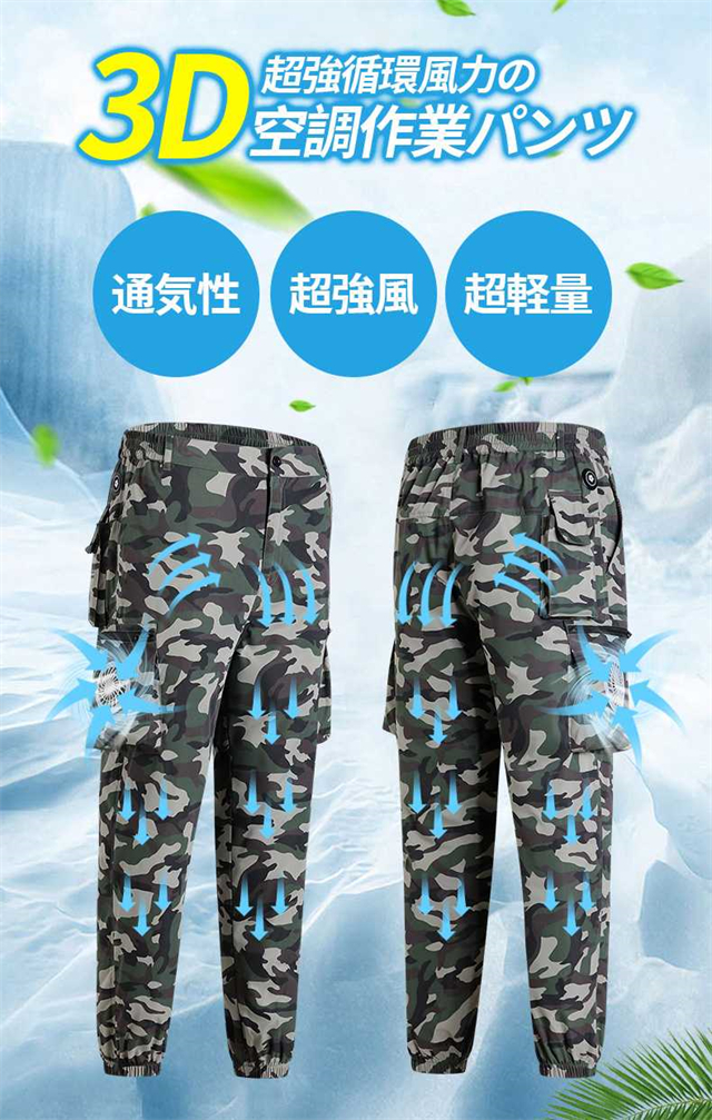 空調ズボンM~4XL 2つファン付き 夏ズボン