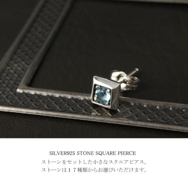 選べる17種 天然石 スクエア プチ ピアス 1P 片耳用 シルバー 925 四角形 誕生石 シンプル さりげない きれいめ かっこいい ガーネット アクアマリン
