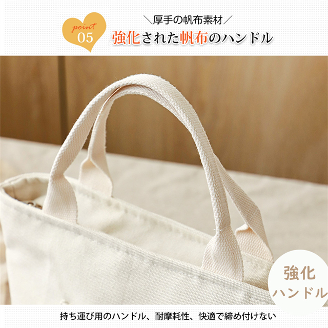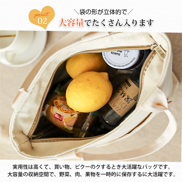 ペットボトルが立てて入る底マチの広いランチトートバッグ