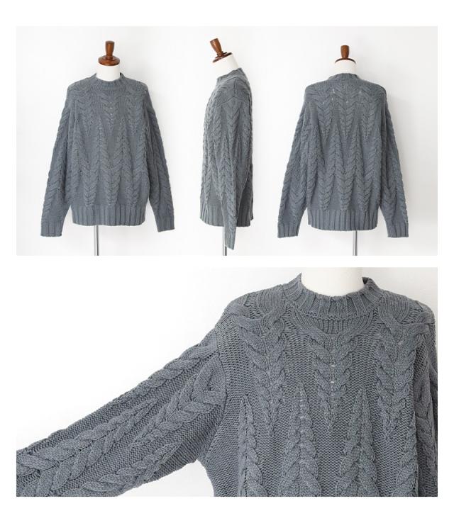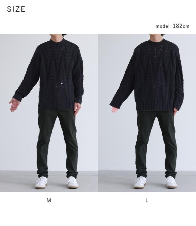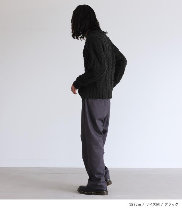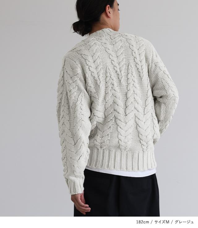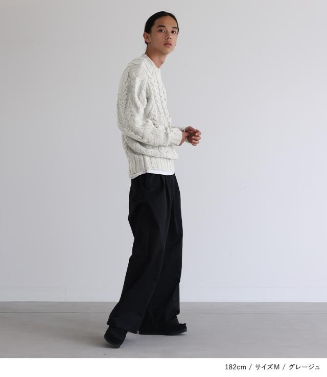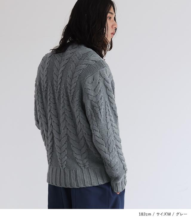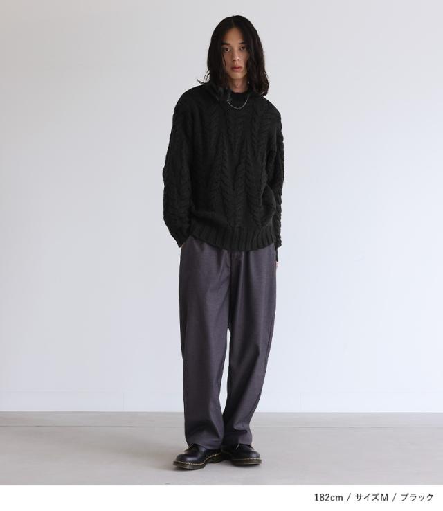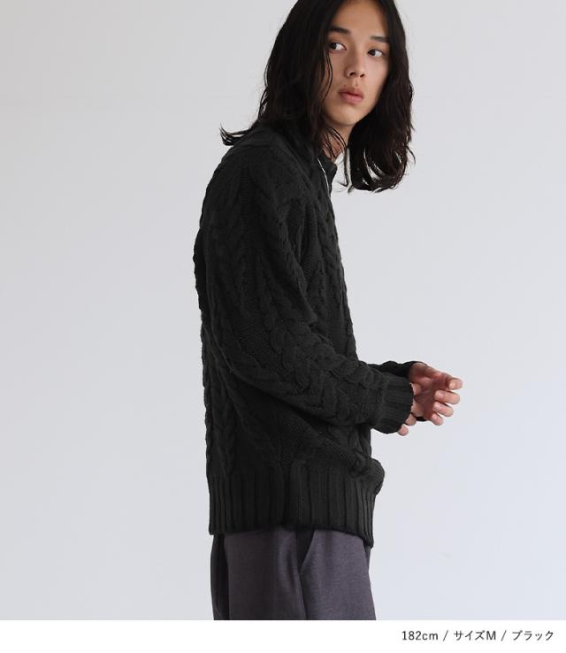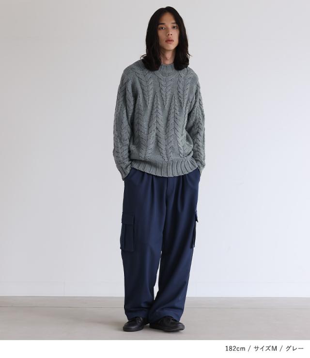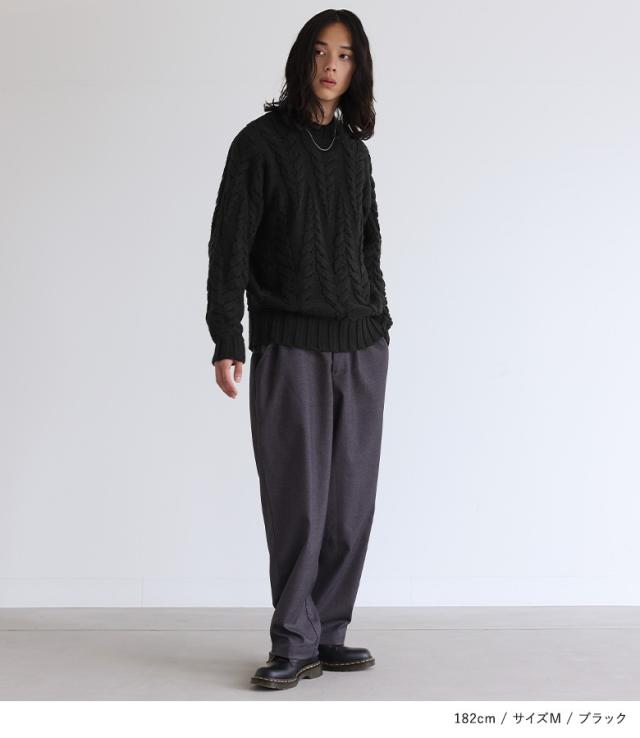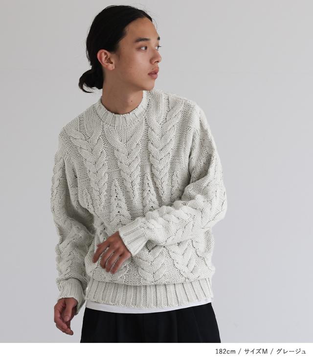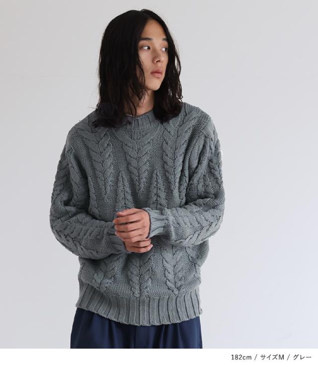 『立体ケーブル編みニット』【メール便不可】【60】[ニット 長袖 メンズ トップス セーター クルーネック 幾何学模様 プルオーバー ざっくりニット リブ ローゲージ 無地 ケーブルニット 厚手 オーバーサイズ]