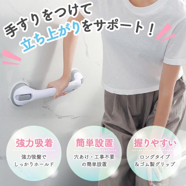 手すり 介護手すり ロングタイプ てすり 手摺り 介護用品 お風呂 浴室 浴槽 立ち上がり 吸盤 補助 トイレ 立つ 高齢者 転倒防止 自宅 掴まる ハンドル サポート 壁 入浴 風呂 ガラス タイル 取っ手 持ち手 安心 安全 滑り止め お風呂用 入浴用 浴室用 固定 寝室 玄関 階段