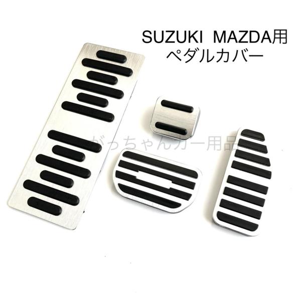 スズキ マツダ車用 ペダルカバー 高品質アルミ ワゴンR スイフト ハスラー スペーシア アルト ソリオ クロスビー MRワゴン イグニス フレア キャロル用 4点セット アクセルペダル ブレーキペダル 内装 カスタム アクセサリー パーツ カスタマイズ 車用品 カーインテリア