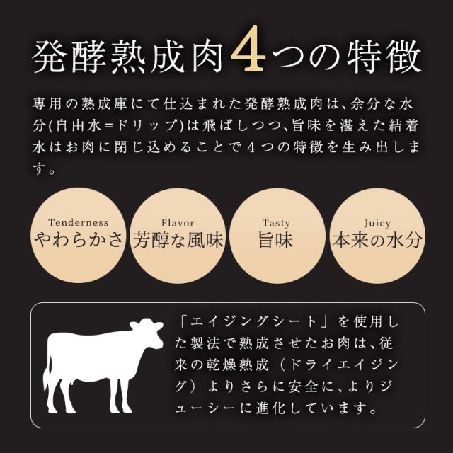 従来の乾燥熟成(ドライエイジング)よりさらに安全に、よりジューシーに深化しています。