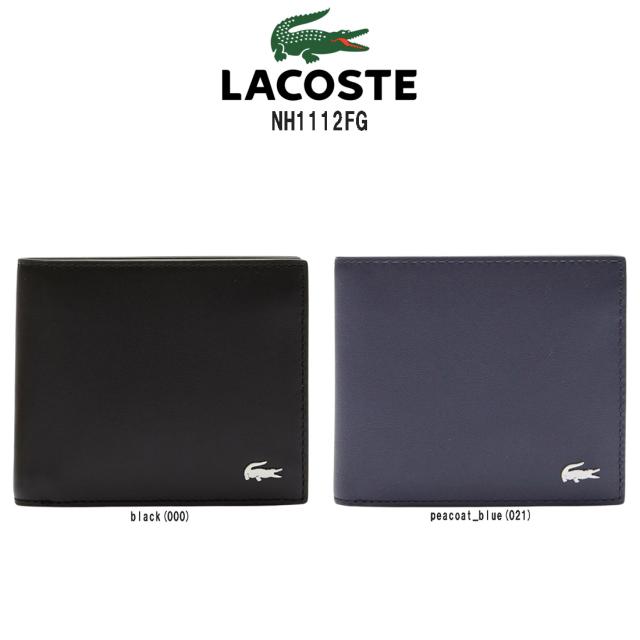 LACOSTE(ラコステ)財布 レザー 二つ折り 小銭入れ付き ウォレット ワンポイント ワニ 本革 シンプル シック ポケット メンズ 男性用 NH1112FG
