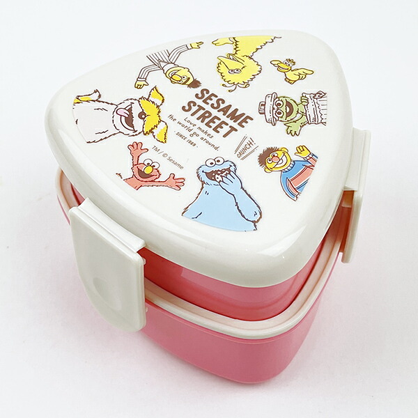 セサミストリートの三角形型の2段お弁当箱です♪コンビニの三角おにぎり1個が袋のまますっぽり入ります♪上段下段とも、ごはんがつきにくい「くっつかない加工」が施されています。内蓋収納フォーク(プラスチック製)付き。食べ終われば1段にコンパクトに収納できます!※ロック式ですが、パッキンは付いていませんので汁気のある食材はお避け下さい。※フタ・中ブタ・フォークを外して電子レンジOK!【容量:上段230ml、下段270ml】
