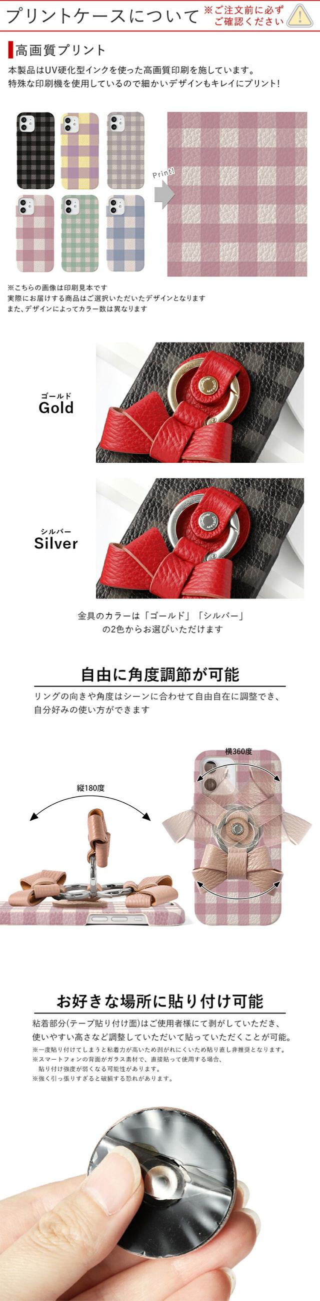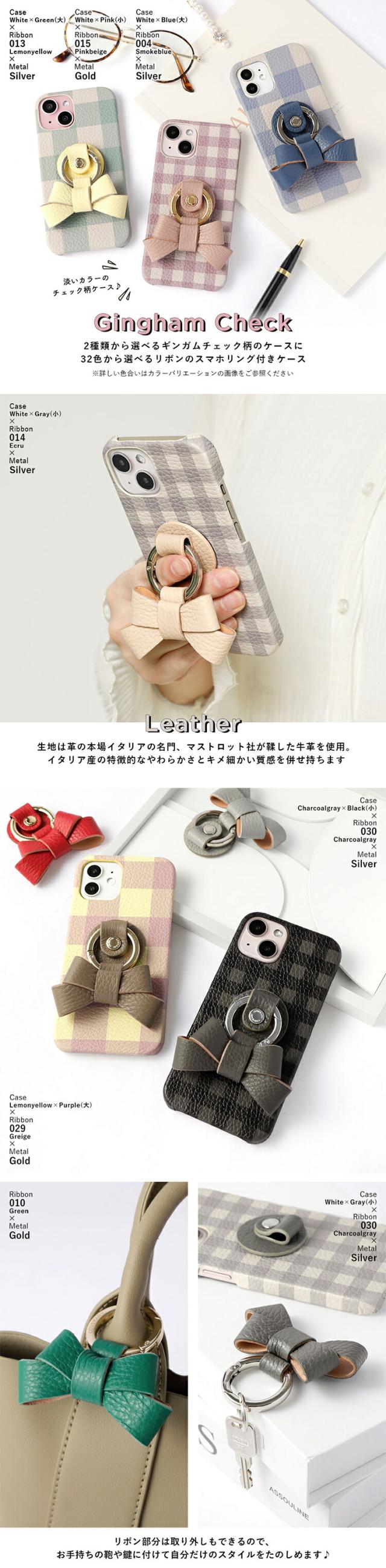 選べる2種類のギンガムチェック柄×リボンのスマホリング32色