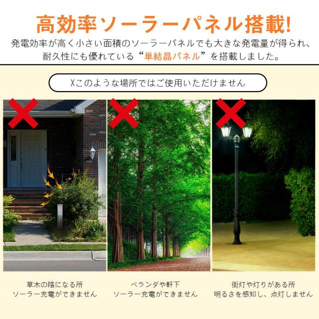 ライトの内部に光感知センサーがあるので、夜には強い灯りのある場所に設置しないでください。