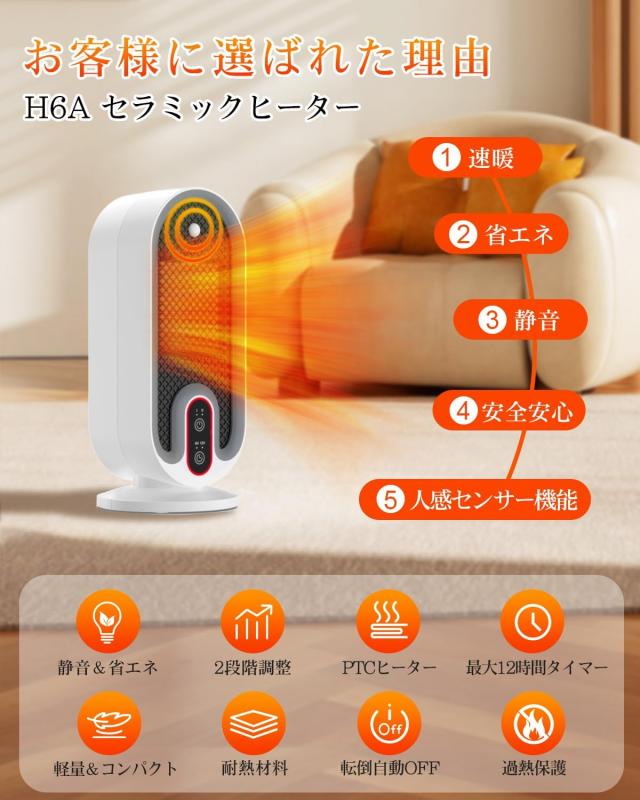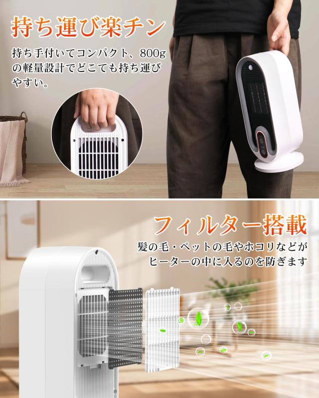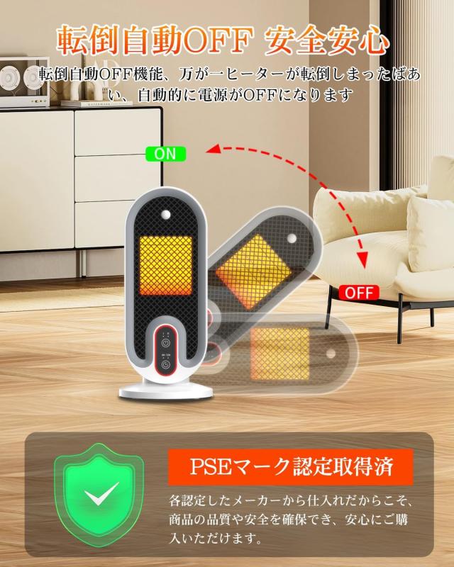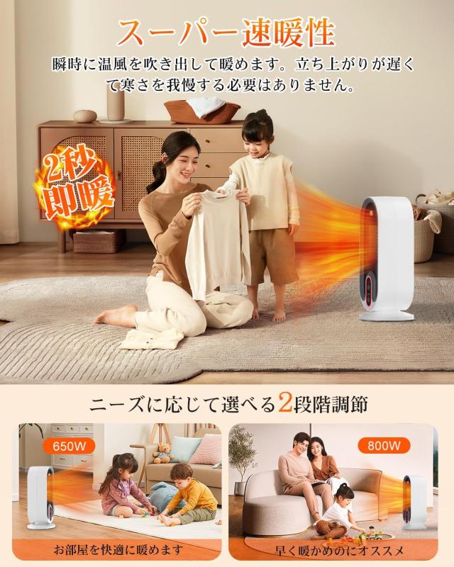 ?2秒速暖 ?2段階風量調整 ?切タイマー ?転倒自動OFF ?V0級難燃安全素材 ?過熱防止機能 ?軽量 ?お手入れ簡単 ?静音 ?省エネ ?人感センサー