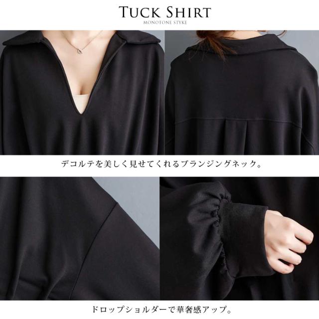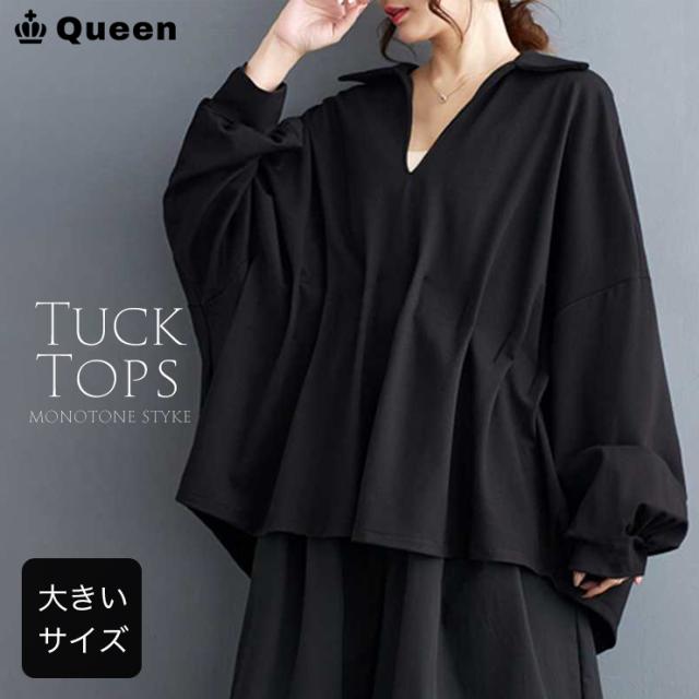 大きいサイズ レディース ドルマントップス チュニックシャツ スキッパー タックブラウス 秋 春 (536071)