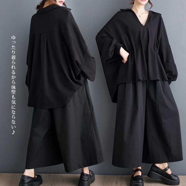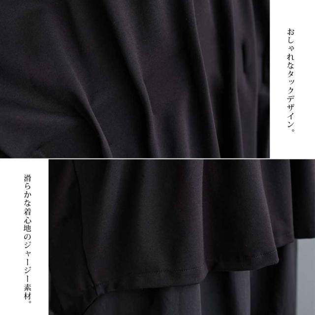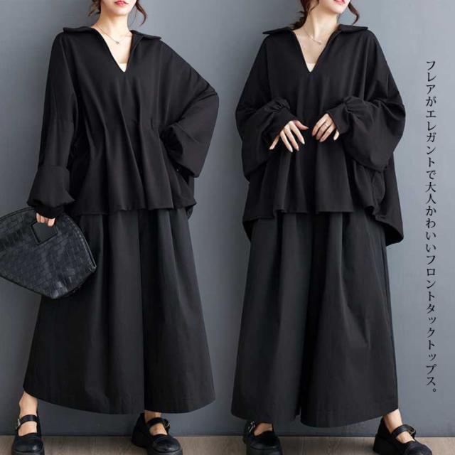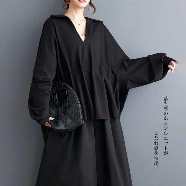 ★☆大きいサイズ レディース ドルマントップス チュニックシャツ スキッパー タックブラウス 秋 春 LL 3L 4L 5L 6L ブラック☆★
