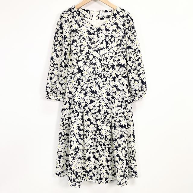 【中古】クミキョク 組曲 KUMIKYOKU ワンピース 七分袖 花柄 ブラック ホワイト S2 レディース