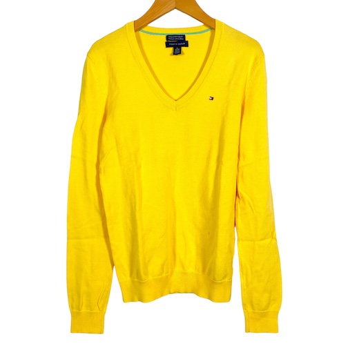 【中古】トミーヒルフィガー TOMMY HILFIGER 薄手セーター 長袖 ロゴ刺繍 イエロー 黄色 XS レディース