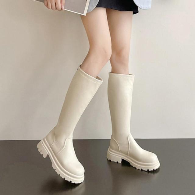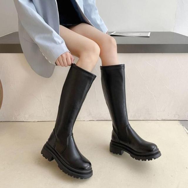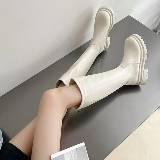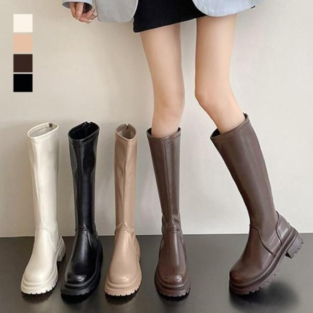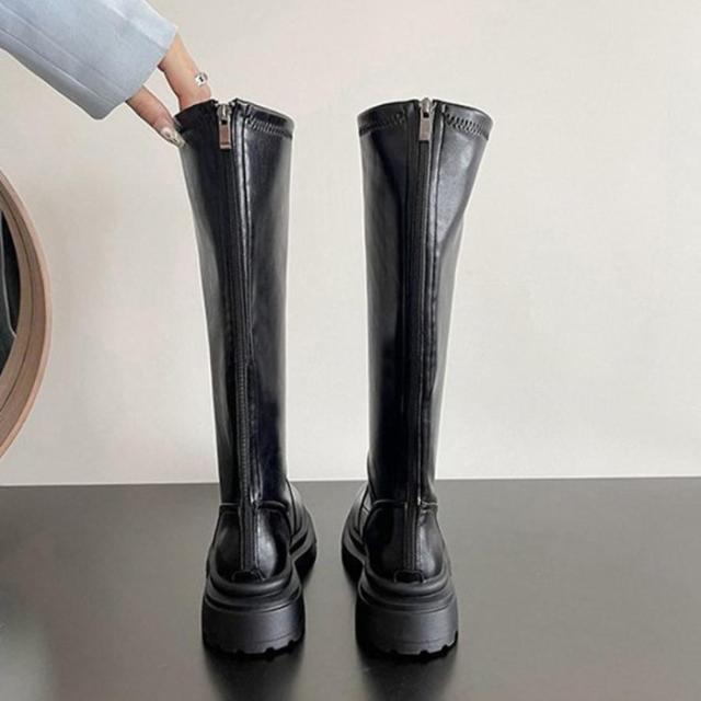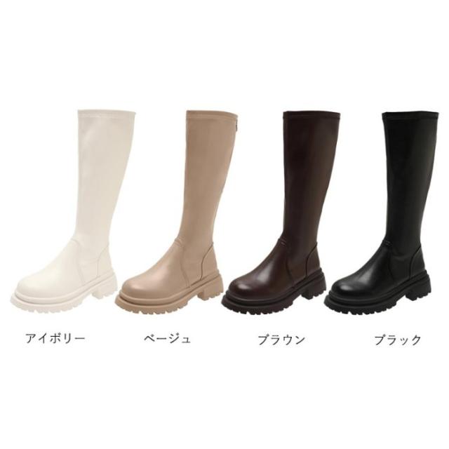 ニーハイブーツ 膝下 ジョッキーブーツ バックジップ厚底 PUブーツ 太ヒール 靴 履きやすい 秋冬人気新作 くつ