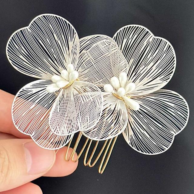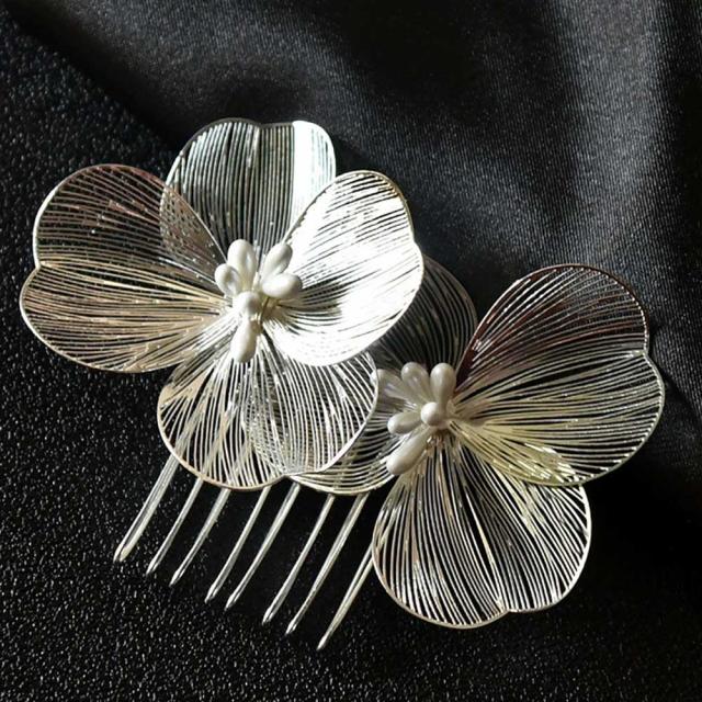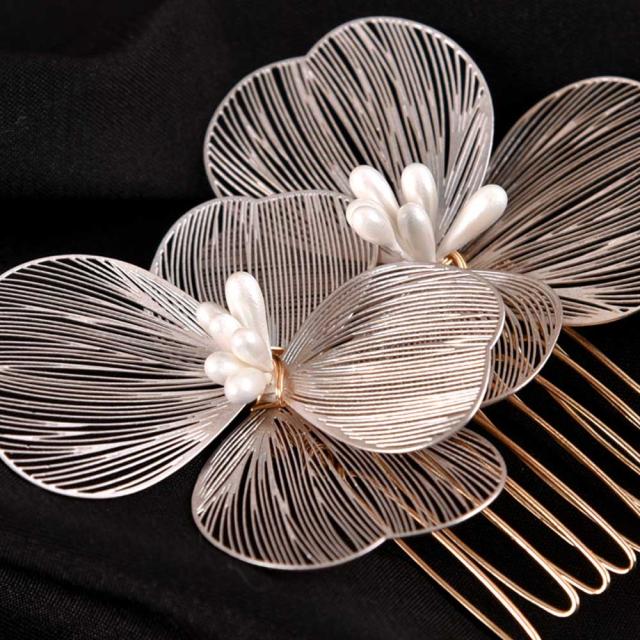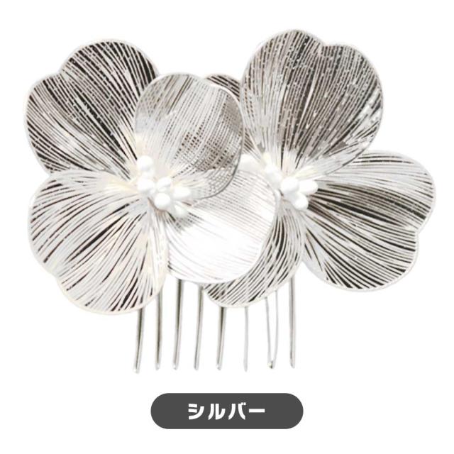和モダン 花 ヘアコーム ワイヤー 大ぶり 髪飾り パーティー 華やか 上品 和風 洋風 おしゃれ かわいい デザイン 着物 和装 結婚式 成人式 オールシーズン イベント