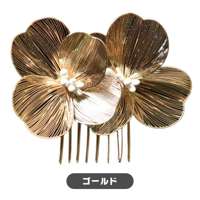 和モダン 花 ヘアコーム ワイヤー 大ぶり 髪飾り パーティー 華やか 上品 和風 洋風 おしゃれ かわいい デザイン 着物 和装 結婚式 成人式 オールシーズン イベント 送料無料