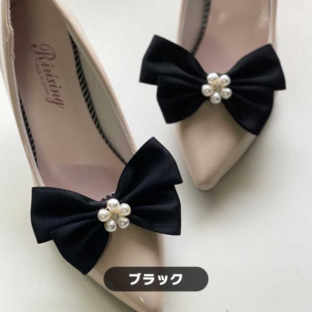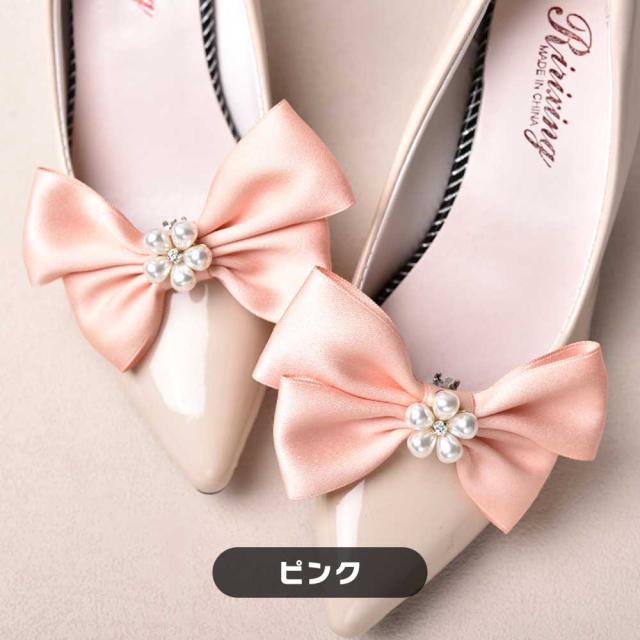 ヒールクリップ リボン パンプス ハイヒール 装着簡単 華やか おしゃれ 大人可愛い アクセサリー 足元コーデ 結婚式 パーティー 上品 フェミニン 取り外し可能 装飾アイテム 送料無料