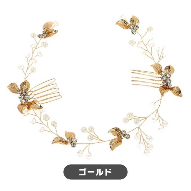 ヘッドドレス リーフ 小枝アクセ パーティー 華やか 上品 髪飾り イベント アクセサリー フェミニン 繊細 大人可愛い ヘアアレンジ ヘアジュエリー ドレスアップ 送料無料