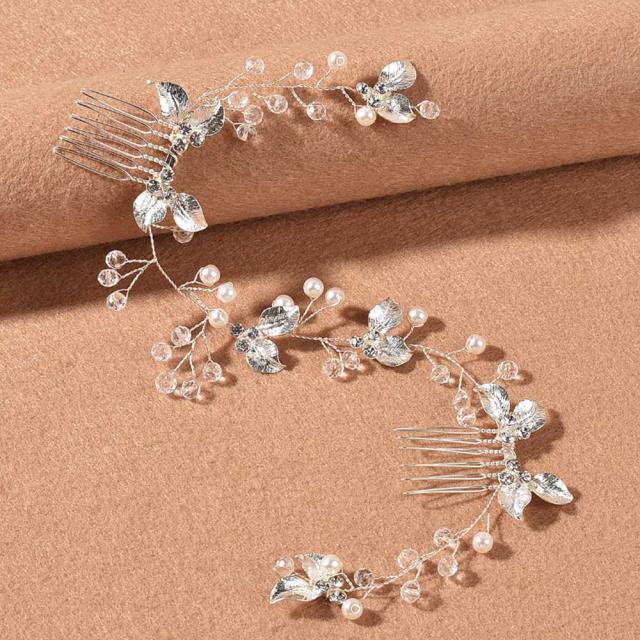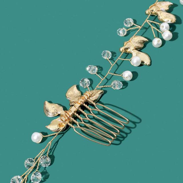 ヘッドドレス リーフ 小枝アクセ パーティー 華やか 上品 髪飾り イベント アクセサリー フェミニン 繊細 大人可愛い ヘアアレンジ ヘアジュエリー ドレスアップ