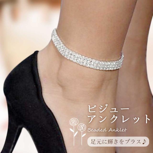 アンクレット ビジュー キラキラ 簡単着用 伸縮 フィット感 足元アクセサリー おしゃれ 大人エレガント 重ね付け 華やか 足元コーデ 旅行 シンプルデザイン スタイリッシュ 送料無料