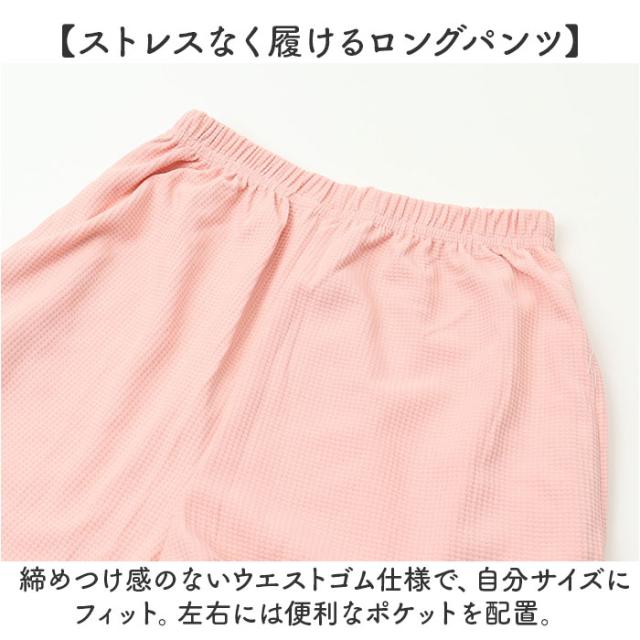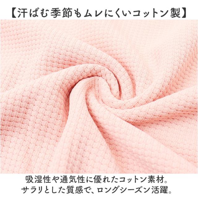 | 商品説明 | 【お家時間も心地よくリラックス】 ・バツグンの着心地◎ゆったりタイムも就寝中も快適な「蒸れにくいルームウェア」。 【単体使いもできるセットアップ】 ・長袖トップス&ロングパンツ。ヨレにくい凹凸のあるワッフル生地で、ナチュラルな風合い。 【汗ばむ季節もムレにくいコットン製】 ・吸湿性や通気性に優れたコットン素材。サラリとした質感で、ロングシーズン活躍。 【チクチクせず心地よい着用感】 ・直接肌に当たる裏地は、滑らかな肌触り。1枚で着てもお肌を傷つけない◎ 【着脱がスムーズでこなれ感もプラス】 ・頭からすっぽり被ったり、スッと足入れ。体のラインを拾いにくく、ゆるっとした着こなしに。 【動きを妨げないストレッチ性】 ・程よく伸びて、家事などもラクラク。寝返りなどもしやすく、心地よい睡眠をサポート。 【ワンマイルウェアにもなるトップス】 ・首元ゆったりクルーネック。裾はサイドにスリットを入れ、上下で丈感に差を出したデザイン。 【ストレスなく履けるロングパンツ】 ・締めつけ感のないウエストゴム仕様で、自分サイズにフィット。左右には便利なポケットを配置。 【仲良くリンクコーデが叶うアイテム】 ・年代問わず選びやすい、シンプルなデザイン。サイズ展開も豊富で、お揃いで着用OK。 |