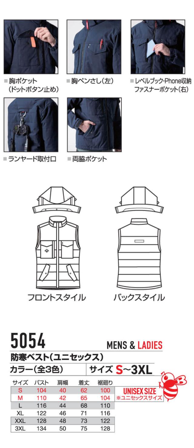 [即日発送]防寒着 バートル BURTLE サーモクラフト 防寒ベスト(単品) 5054 THERMOCRAFT サイズXXL