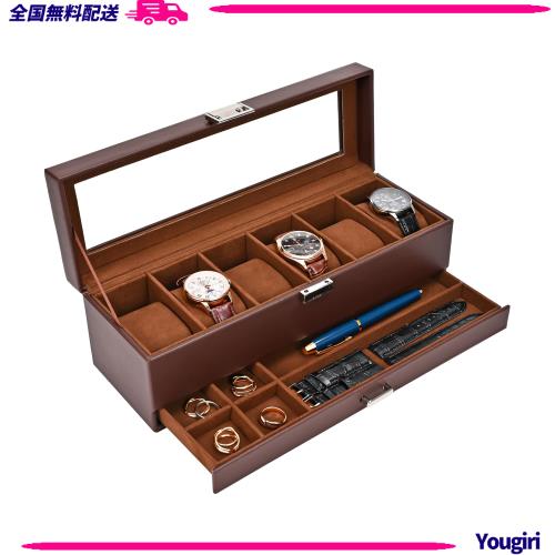 ProCase 腕時計ケース PU製 6本用 2段式 ウオッチボックス 男性 アクセサリー収納 ガラス天板 ディスプレイケース 小物整理 プレゼント