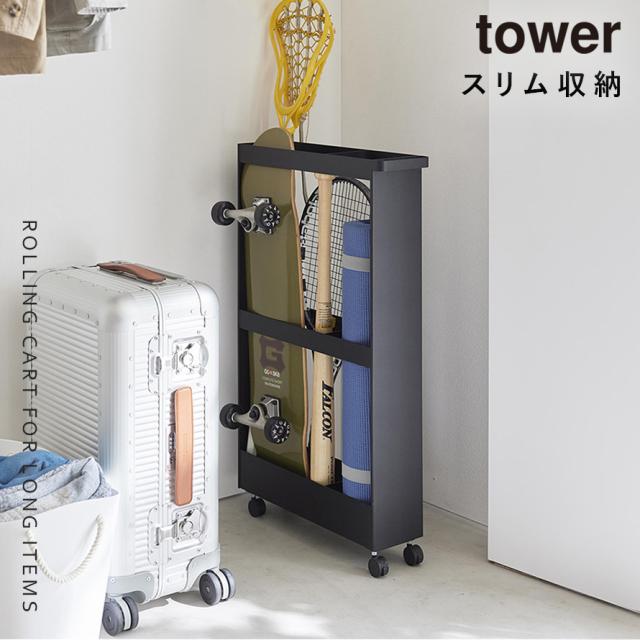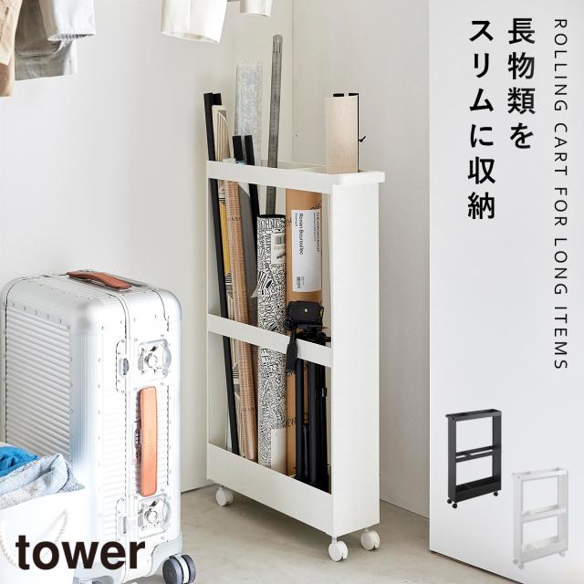 キャスター付き 長物収納スリムワゴン タワー 山崎実業 tower スリムワゴン キャスター付き ワゴン スリム クローゼット収納 おしゃれ モノトーン ホワイト ブラック 1713 1714 メーカー直送
