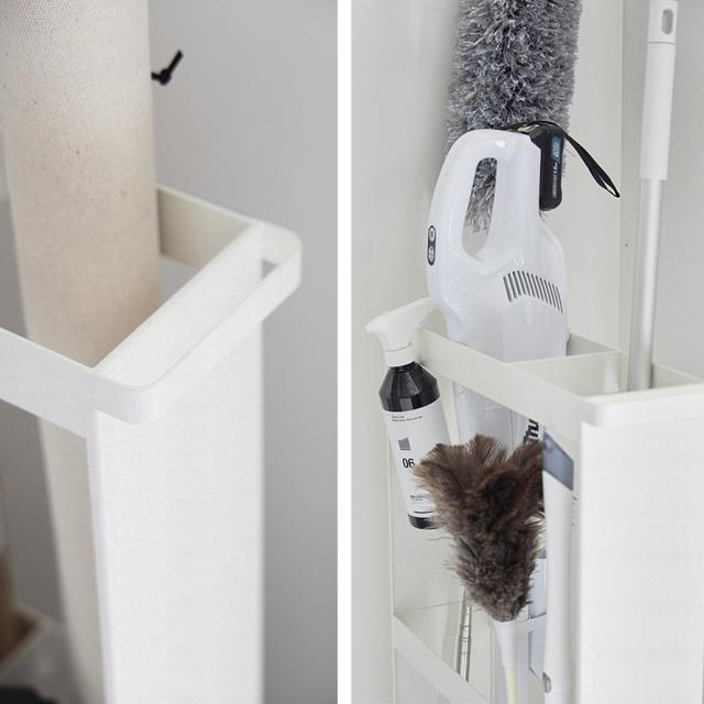 また、ほうきやワイパーといった掃除用品の収納としても。