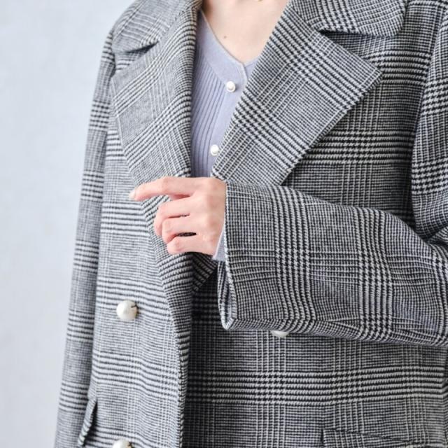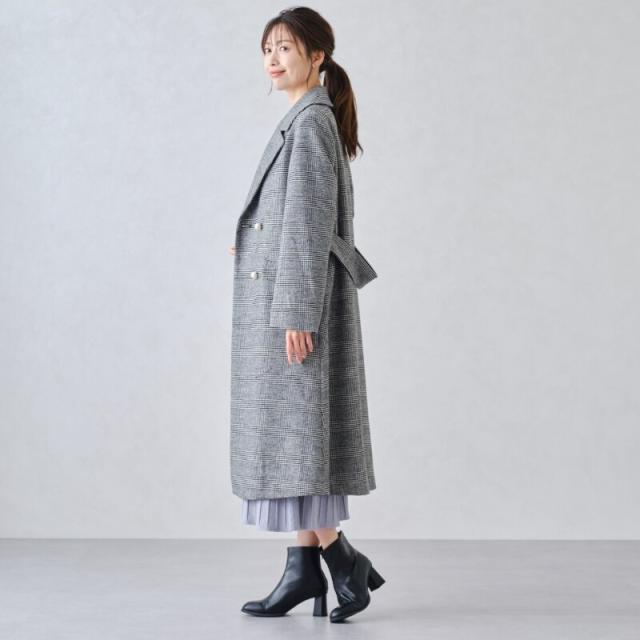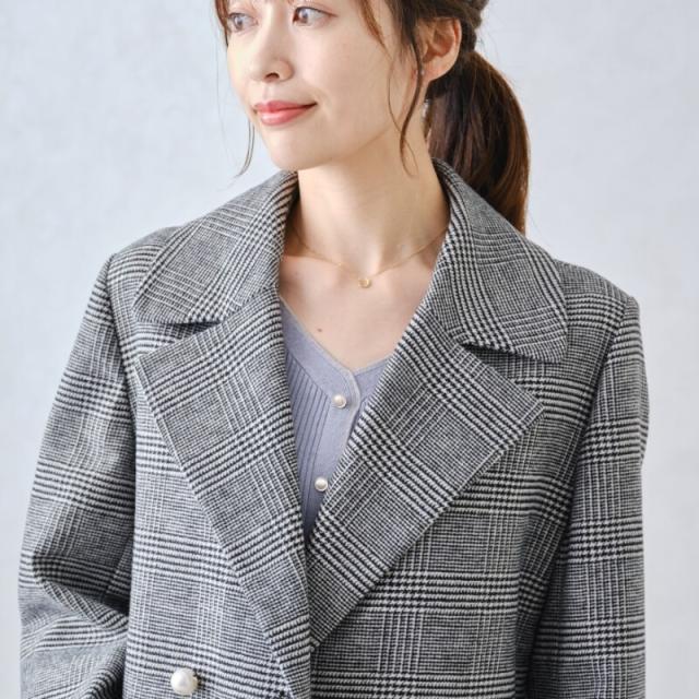 華やかなBIGパール付きのウールコートは、端正なチェスター形で甘さを程よく軽減し大人の表情にアレンジ。
