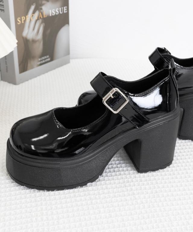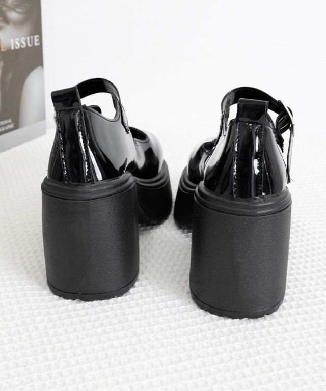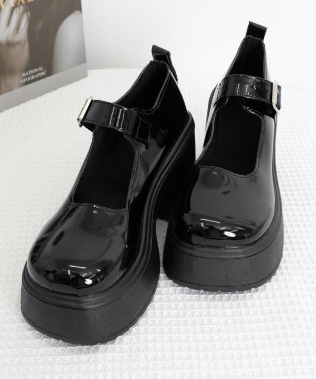 厚底ローファー 韓国風ストラップパンプス