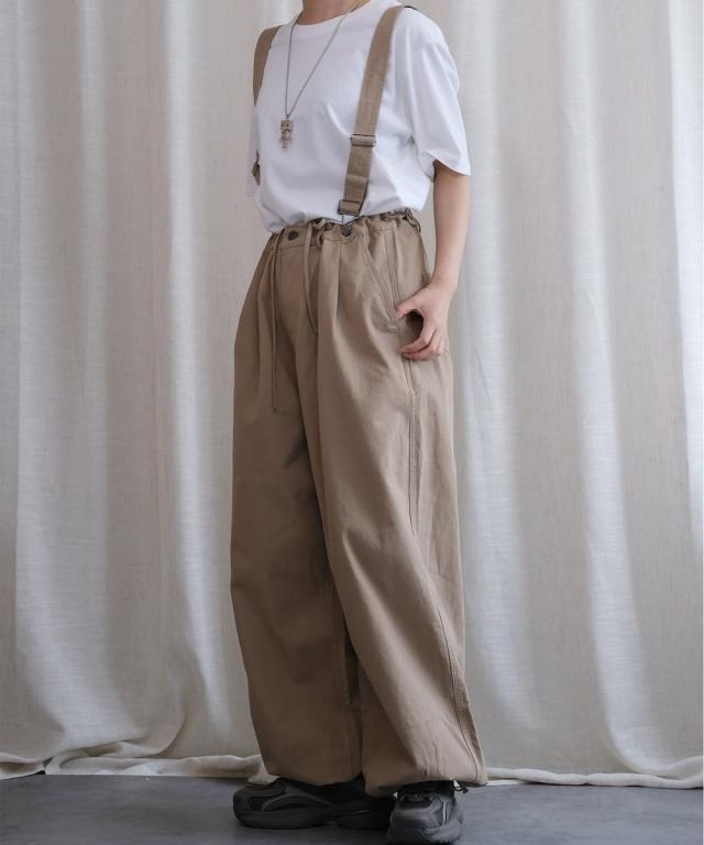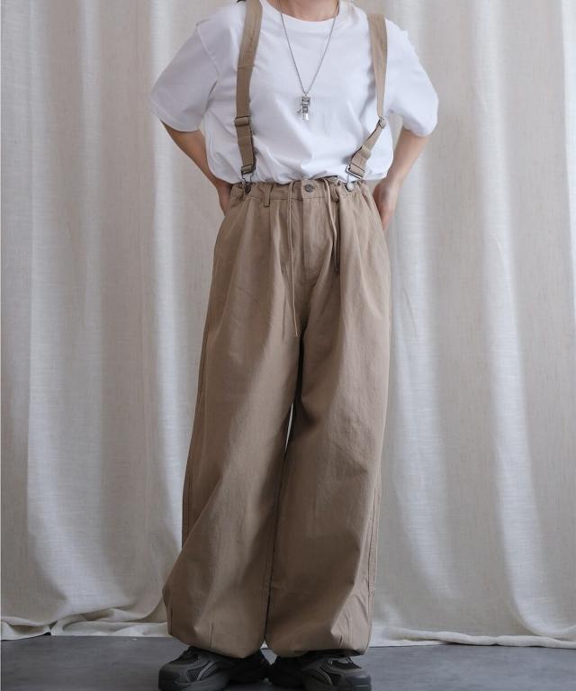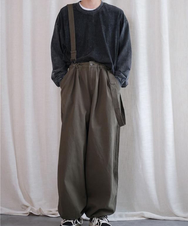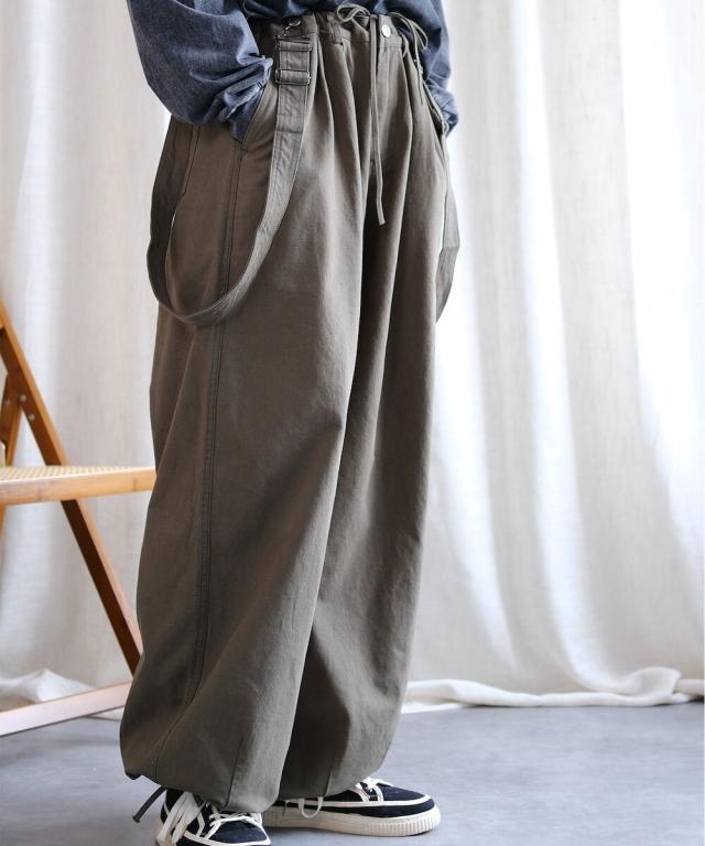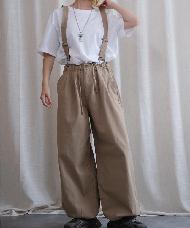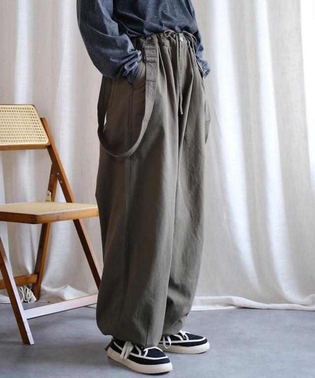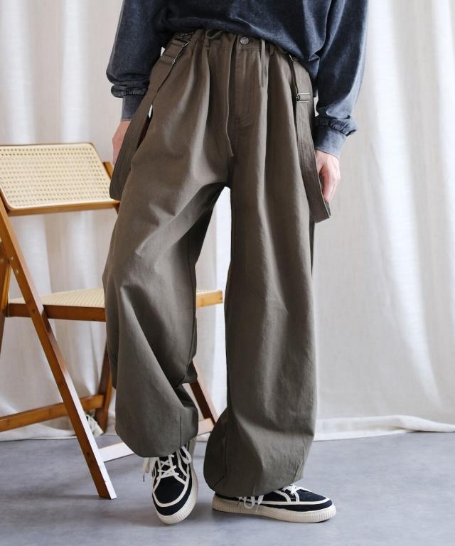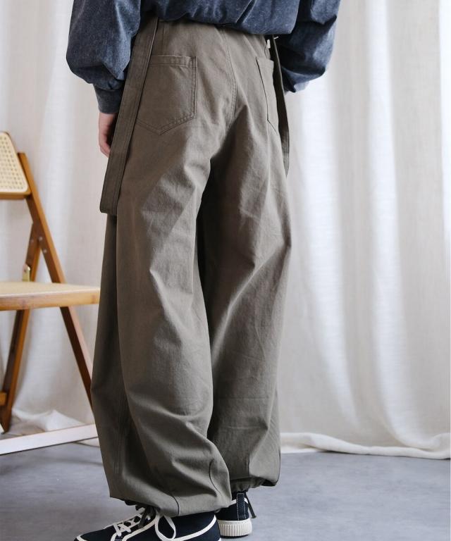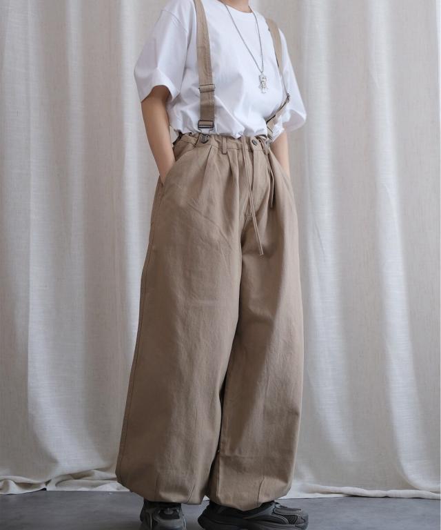 トレンドのボリュームシルエットを追求した、2WAYミリタリーサスペンダー付きワークパンツ