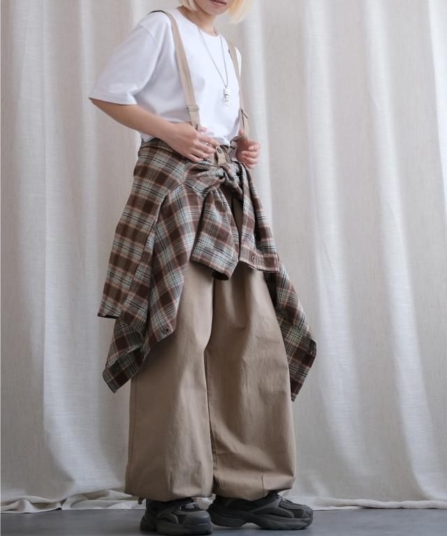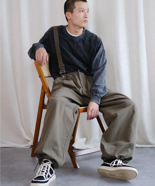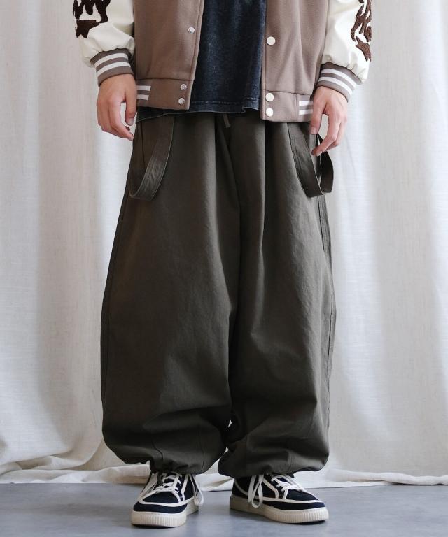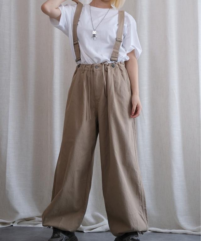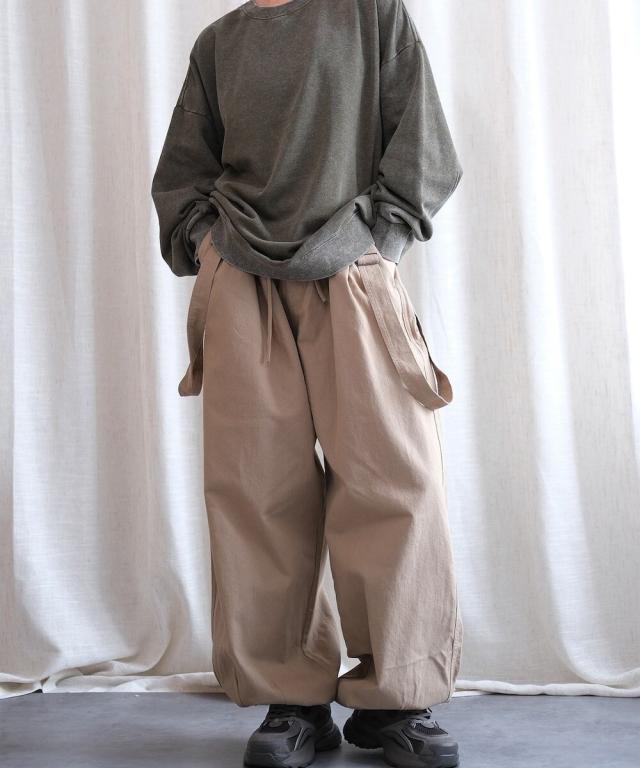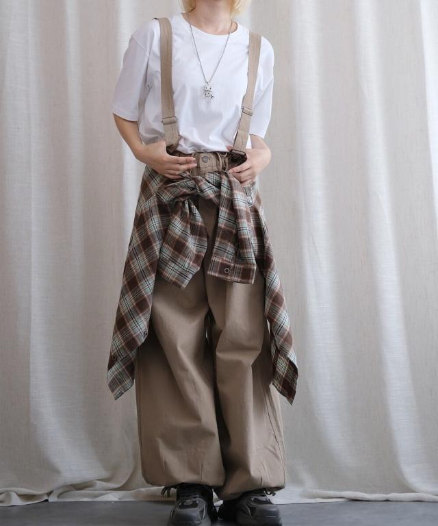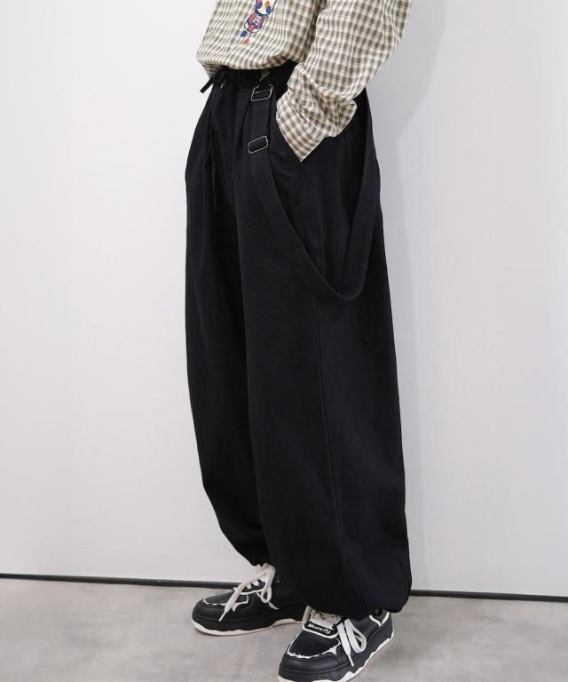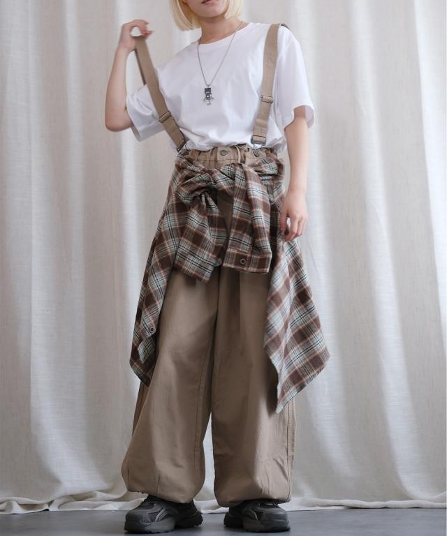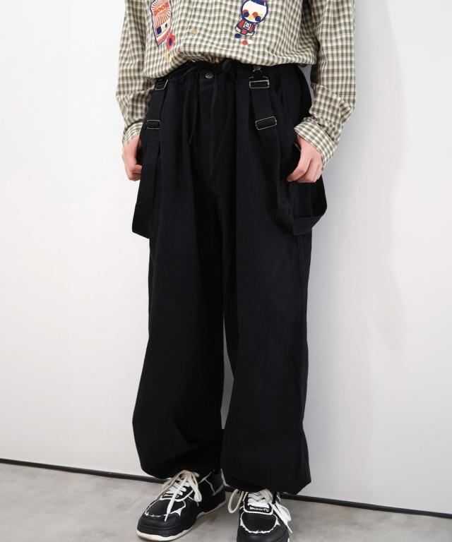 トレンドのボリュームシルエットを追求した、2WAYミリタリーサスペンダー付きワークパンツ