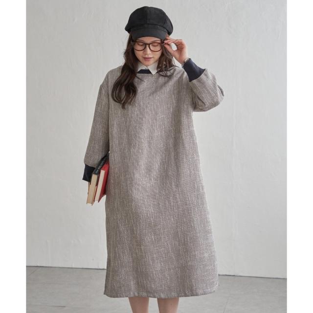秋冬らしいツイード風素材が魅力のワンピース。
