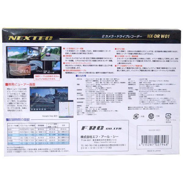 FRC ドライブレコーダー 前後 2カメラ フルHD高画質 GPS搭載 LED信号機対応 前後2カメラで同時録画が可能! NX-DRW01