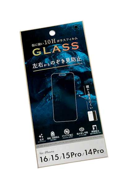iPhone16/15/15Pro/14Pro用左右のぞき見防止ガラス保護フィルム (100円ショップ 100円均一 100均一 100均)