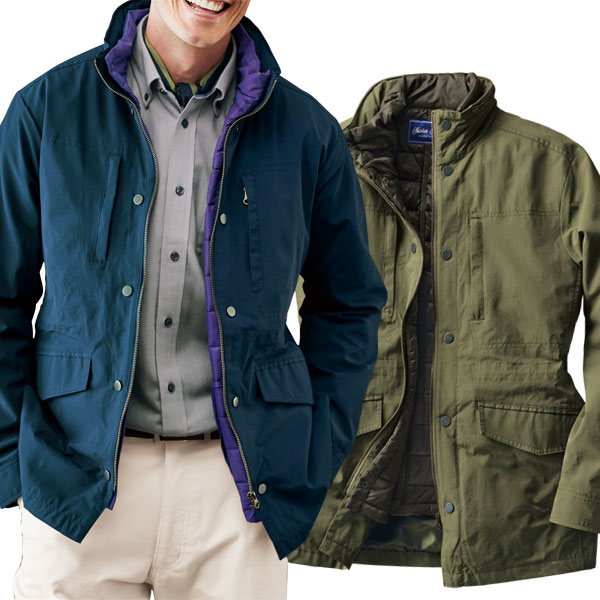 取り外し可能なライナー付きで秋口から春先まで活躍してくれるマルチフィールドジャケット。はっ水加工を施した、風や雨を通しにくい高密度素材のジャケットと中わた入りのライナーがセットになっており、3通りの着こなしが楽しめます。ライナーはボタンで付け外しが楽々。インフード仕様になっており、フードを使わないときは襟に畳んでしまっておけるので襟元もすっきり。