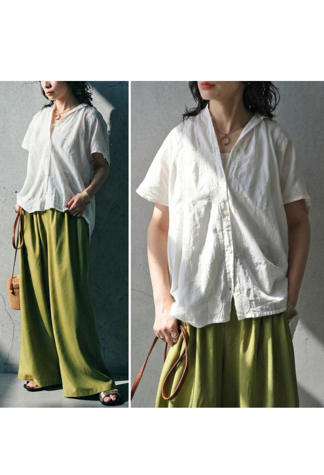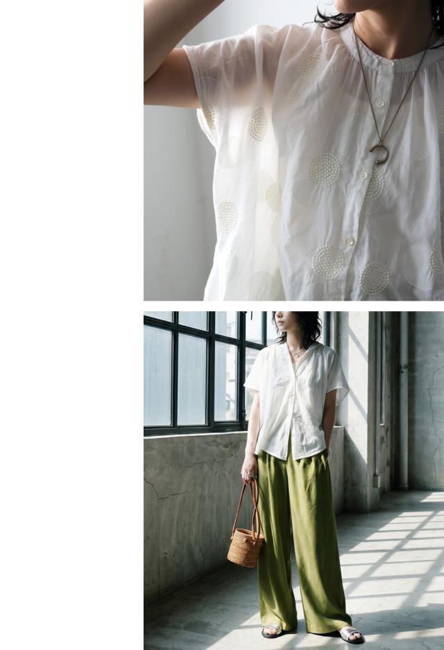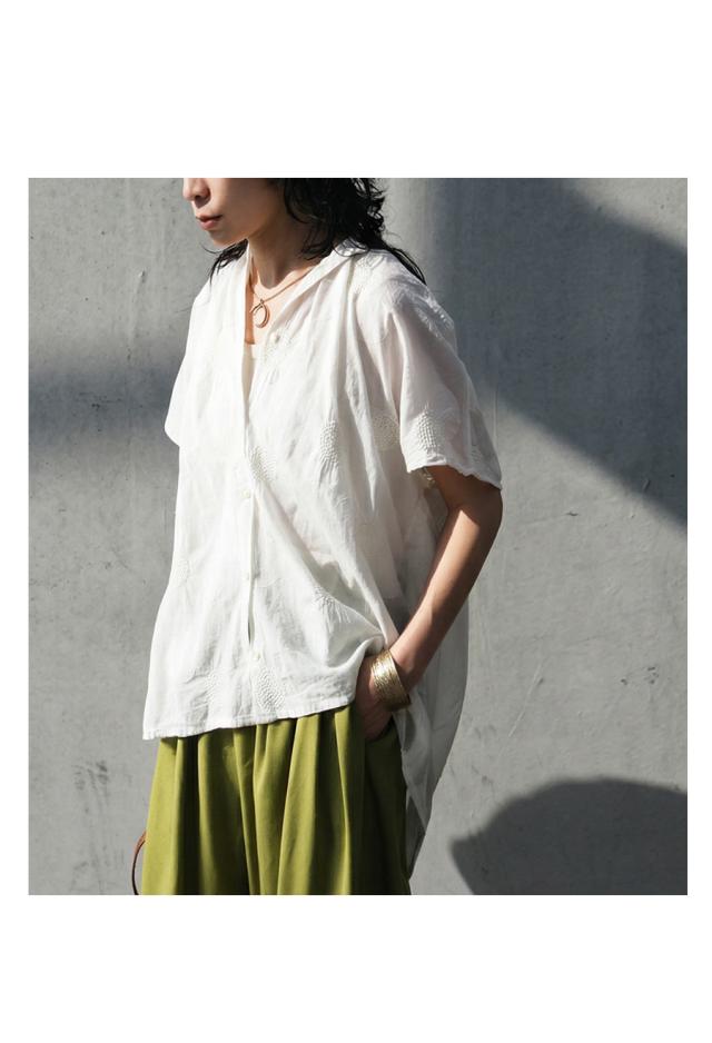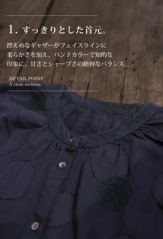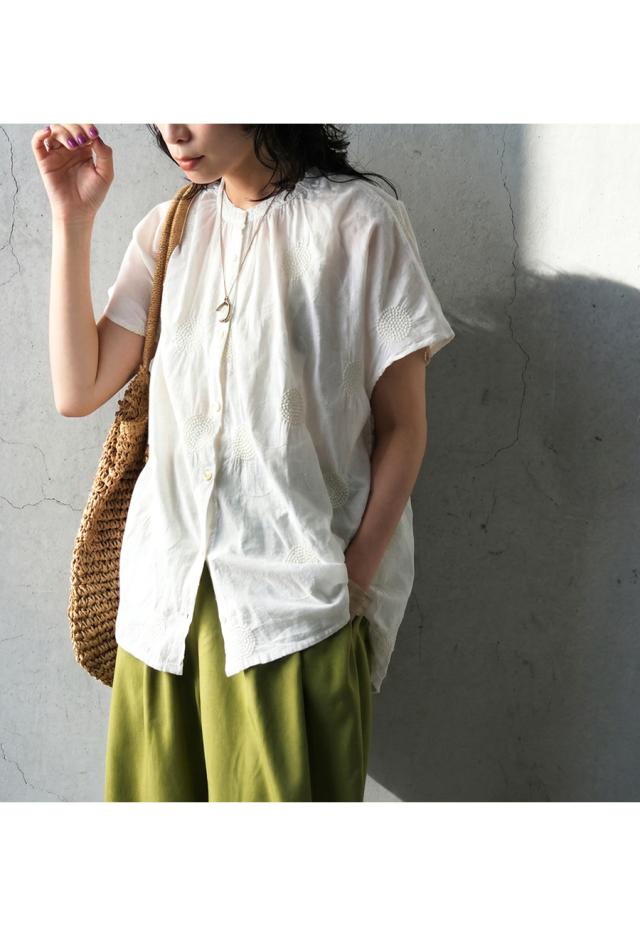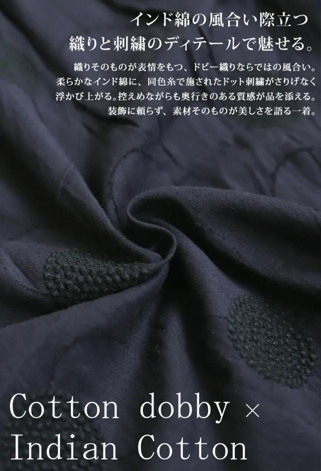 インド綿ならではのやわらかな風合いに、繊細なドット刺繍を重ねた上品なシャツです。