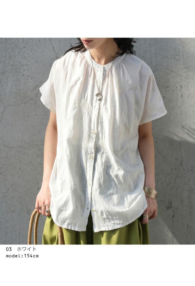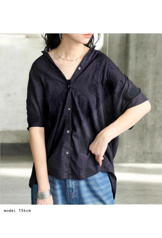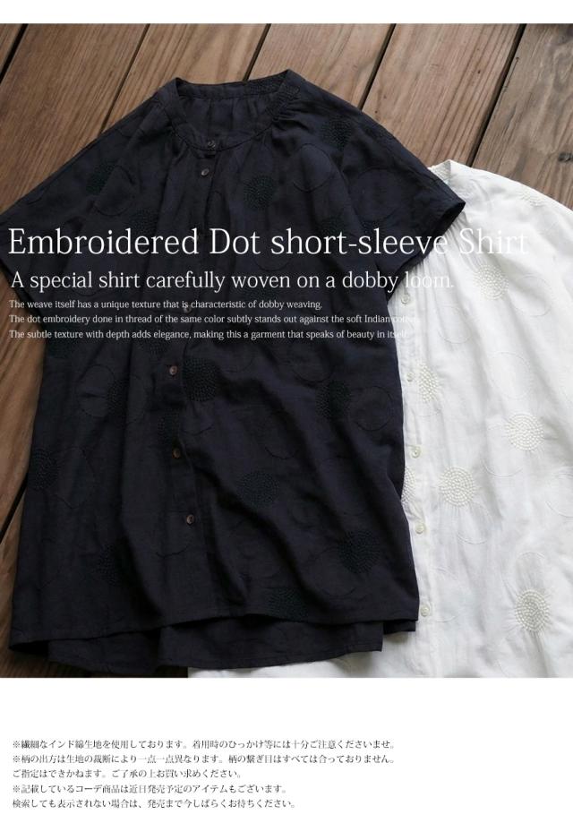 インド綿 シャツ レディース ドット 刺繍 半袖 送料無料・メール便不可