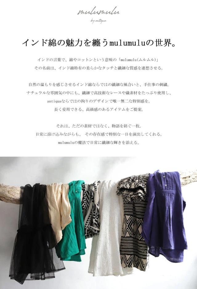 ■■インド綿ならではの繊細な風合い、手仕事の刺繍にフォーカスを当てたantiqua発のブランド『mulumulu(ムルムル)』■■