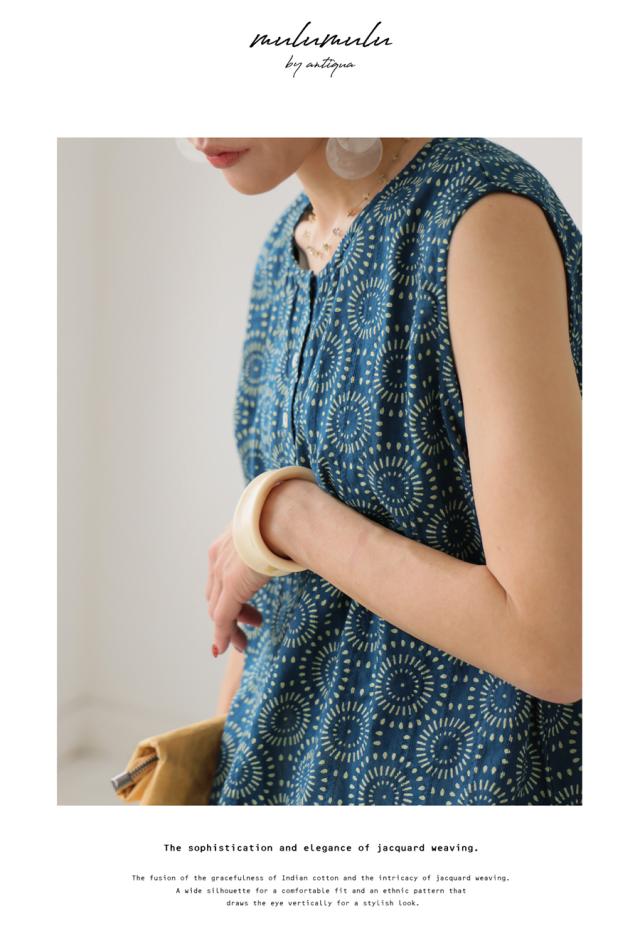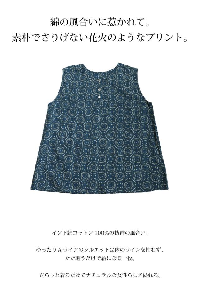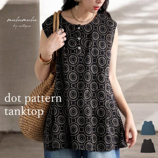 【検索ワード】インド綿 ドット柄タンクトップ レディース トップス ノースリーブ タンクトップ 丸首 クルーネック ドット柄 柄 花火風 風合い 凹凸 プルオーバー かぶり Aライン シェルボタン ゆったり 上品 高級感 きれいめ モード 細見え 華奢見え 大きめ 大きいサイズ タンク デザイントップス 綿100 綿 コットン ブラック 黒 ブルー 青 antiqua mulumulu アンティカ ムルムル 大人 おしゃれ 10代 20代 30代 40代 50代 60代 春 夏 お洒落 カジュアル かわいい かっこいい あんてぃか インド製 ジャイプール 繊細 手仕事 職人技
