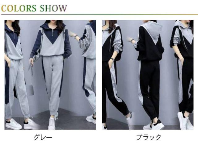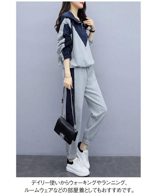 レディース フード付き スポーツウェア 上下セット パーカー 大きいサイズ 長袖 トレーニング カジュアル 上下セット スウェット ルームウェア 部屋着 ジッパー ジャージ ジョガーパンツ ゆったり 普段着 運動着