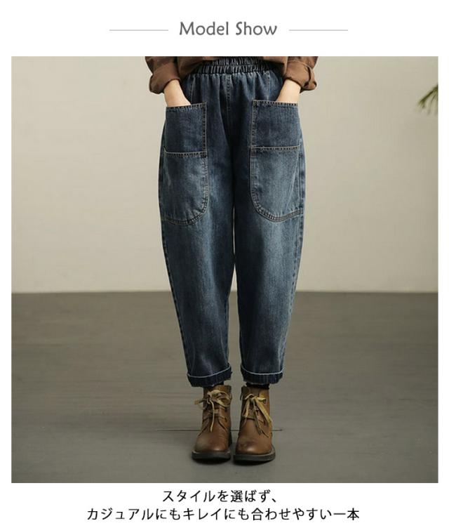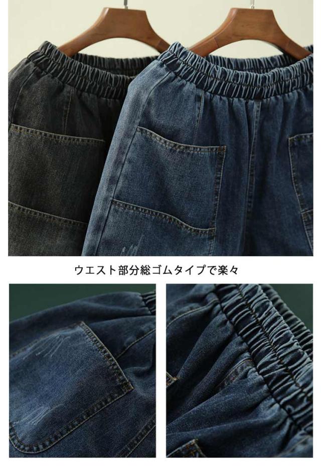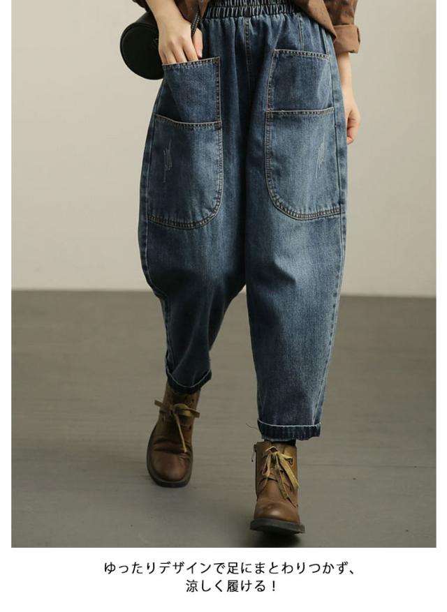 サルエルデニムパンツ サルエルデニムパンツ サルエル パンツ レディース デニム ボトムス デニムパンツ ウエストゴム 動きやすい 体型カバー 春 夏 秋 冬