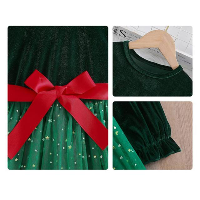 サンタ衣装 サンタドレス コスチューム 子供 キッズ 秋 クリスマス リボン 冬 秋冬 コスプレ クリスマス 春 ワンピース クリスマス衣装 グリーン クリスマスツリー 仮装 サンタクロース 女の子 演出服 パーティー 発表会 お出かけ 通学 グリーン ドレス サンタ