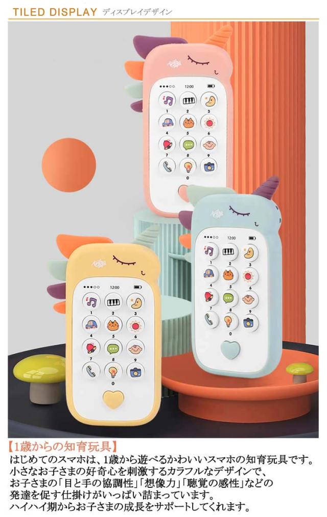 | 【1歳からの知育玩具】 はじめてのスマホは、1歳から遊べるかわいいスマホの知育玩具です。小さなお子さまの好奇心を刺激するカラフルなデザインで、お子さまの「目と手の協調性」「想像力」「聴覚の感性」などの発達を促す仕掛けがいっぱい詰まっています。ハイハイ期からお子さまの成長をサポートしてくれます。 【発達を促すさまざまな機能】さまざまな種類の電子音やミュージックで、はじめてテクノロジーにふれる赤ちゃんは楽しみながら知力をのばすことができます。 【丈夫で安全な設計】 安全なABS樹脂を使用しており、尖った角などのない安全なデザインです。丈夫な作りで耐久性にも優れているので、小さなお子さまにも安心して遊ばせることができます。 【プレゼントにも最適】 出産祝いや誕生日、クリスマスなどの贈り物にもぴったりです。 | |