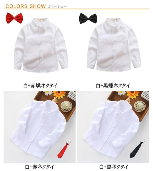| 100cm〜180cmまで対応! 蝶ネクタイ付きのお得なキッズシャツ♪ 入園式や入学式、卒園式や七五三にも | |