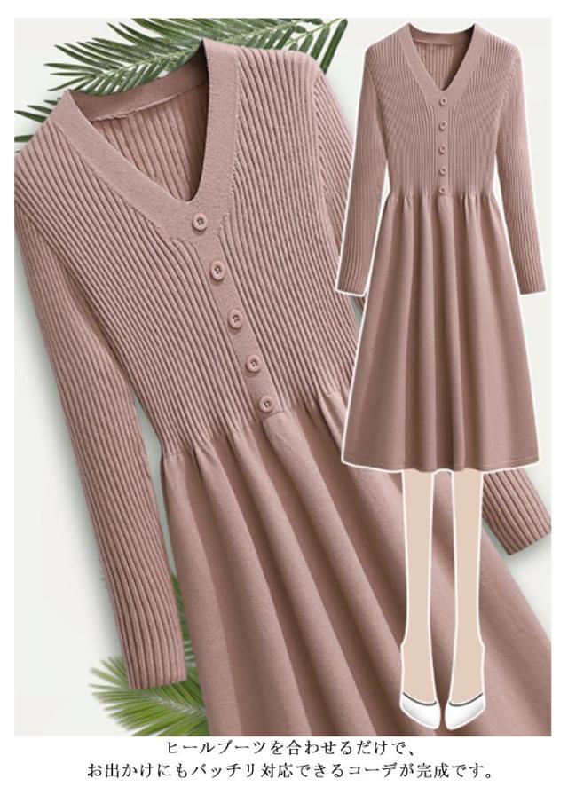 ニット ニットワンピース ニット ロングニット 大人 フレア タイト きれいめ タイトワンピース Aライン ワンピース 長袖 秋冬 Vネック 大人 おしゃれ 春 きれいめ フェミニン キャメル オフホワイト 秋