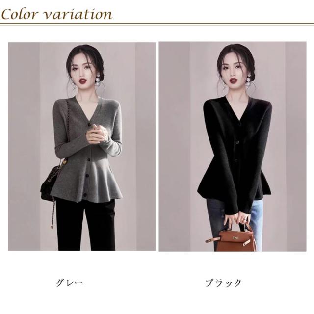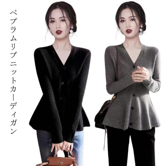 リブ vネック ペプラムトップス カーディガン ボタン 20代 ペプラムカーディガン トップス 長袖 ニット 羽織 ペプラムリブニットカーディガン 体型カバー 秋冬 春 秋服 春服 リブニット 30代 40代 50代 おしゃれ かわいい ブラック グレー