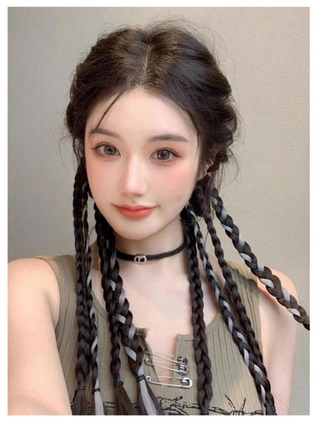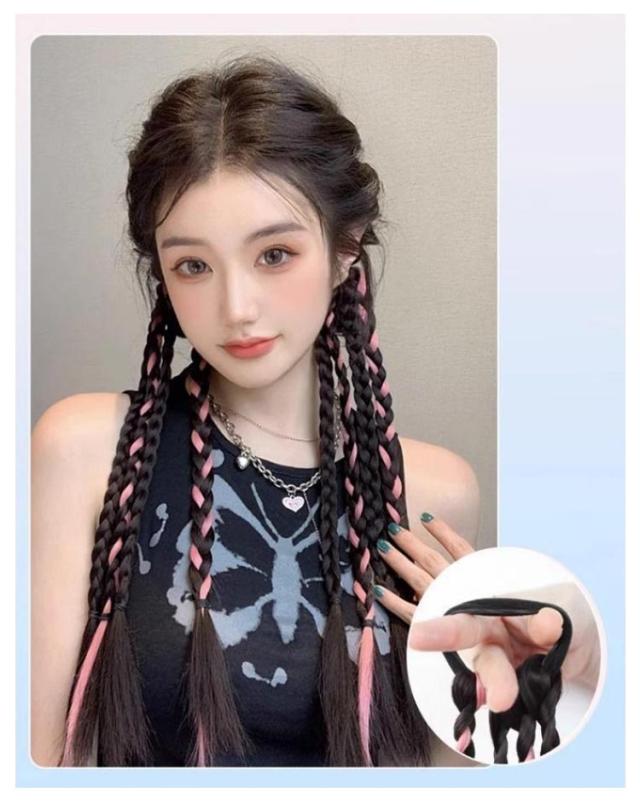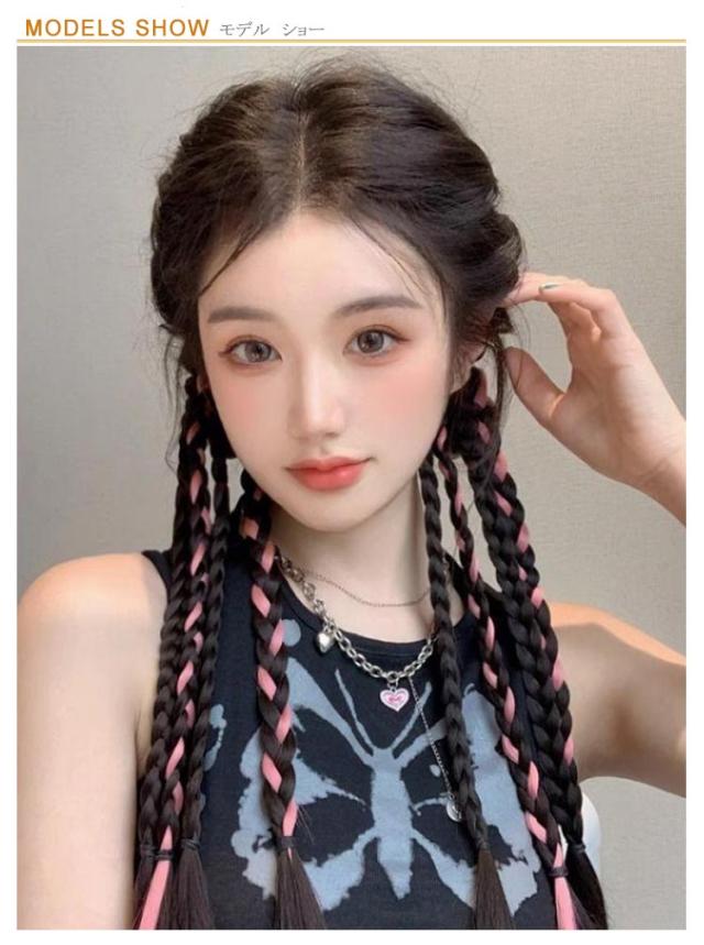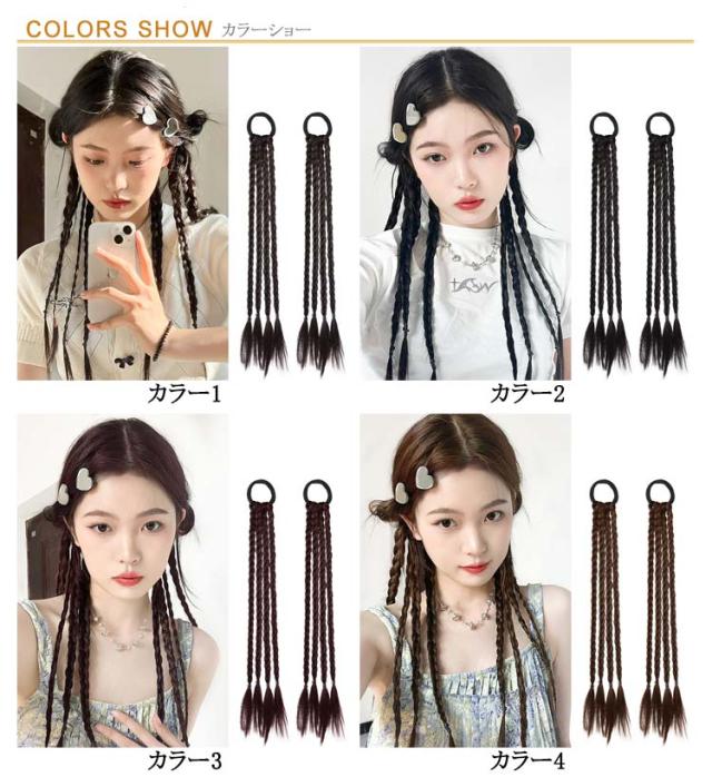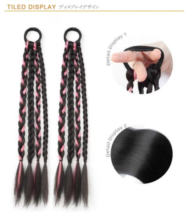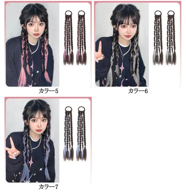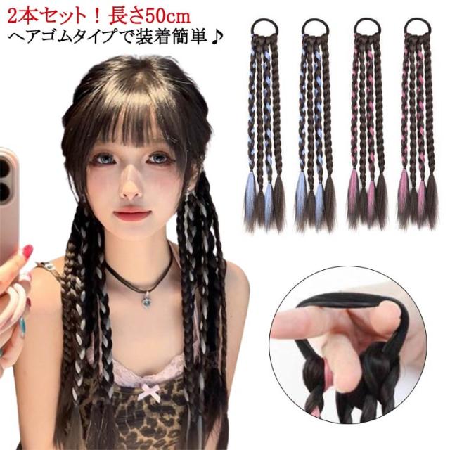 エクステ カラーエクステ 送料無料 簡単 ヘアーエクステンション 長さ50cm グレー 送料無料 便利 編み込み ゴムタイプ ウイッグ キッズ ガールズ 子供 ドレッド ピンク ブルー 2本セット三つ編み ロング つけ毛 派手 メッシュ ヒップホップ ダンス衣装