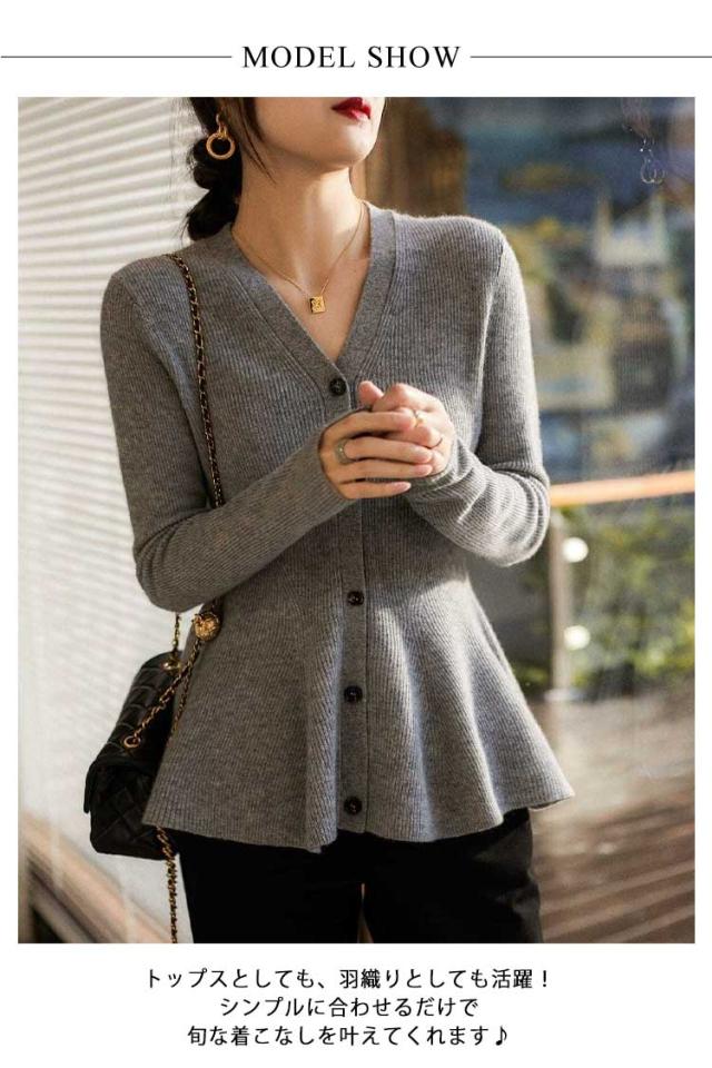 | ペプラムシルエットが華やか!裾ペプラムがポイントのリブニットカーディガン。 Vネックですっきりとした首回りで、寒い季節にはハイネックインナーとレイヤードも◎ 高すぎないウエスト位置での切り替えと、短すぎないペプラム切り替えのバランスが大人女性にぴったりの1着。 高見えする肌触りのよいニットを使用しており、着心地も抜群です。 トップスとしても、羽織りとしても活躍!シンプルに合わせるだけで旬な着こなしを叶えてくれます♪ スラックスやタイトスカートはもちろん、デニムなどカジュアルなボトムスとも相性の良い一枚です。 | |