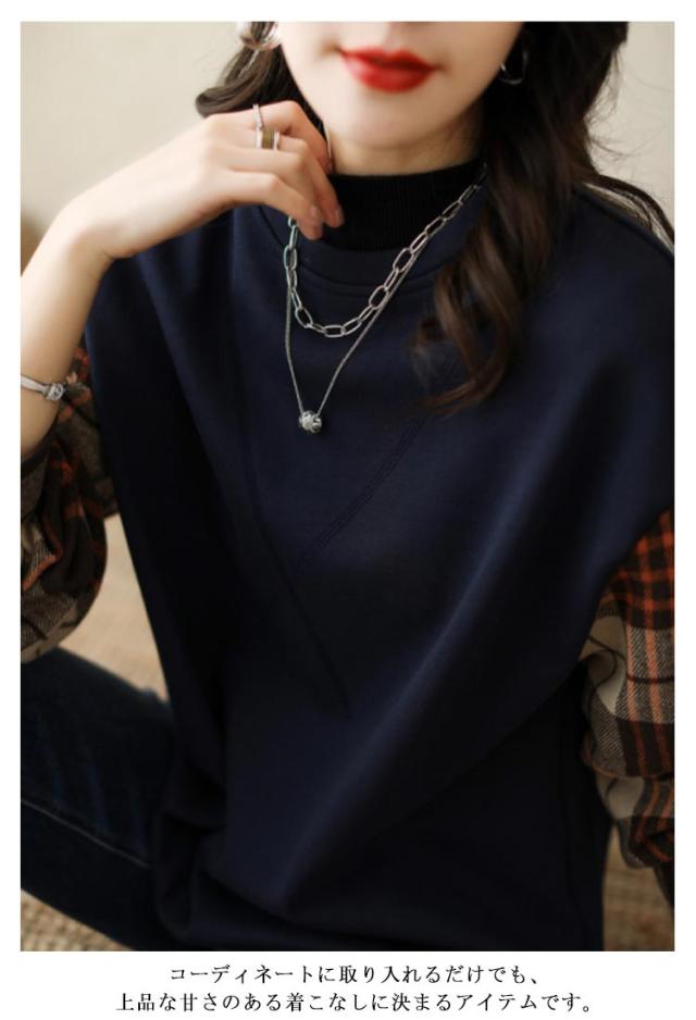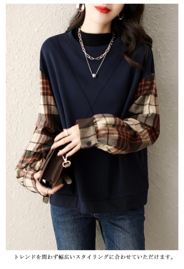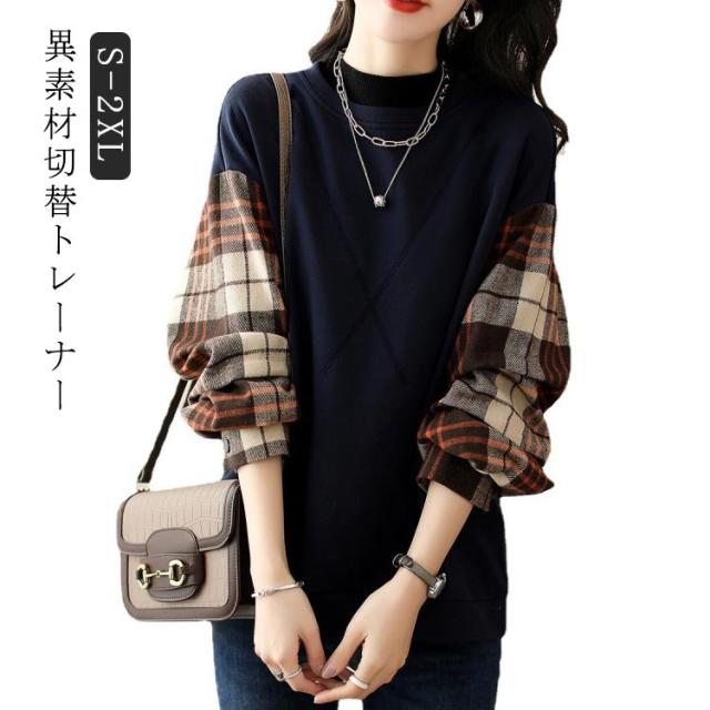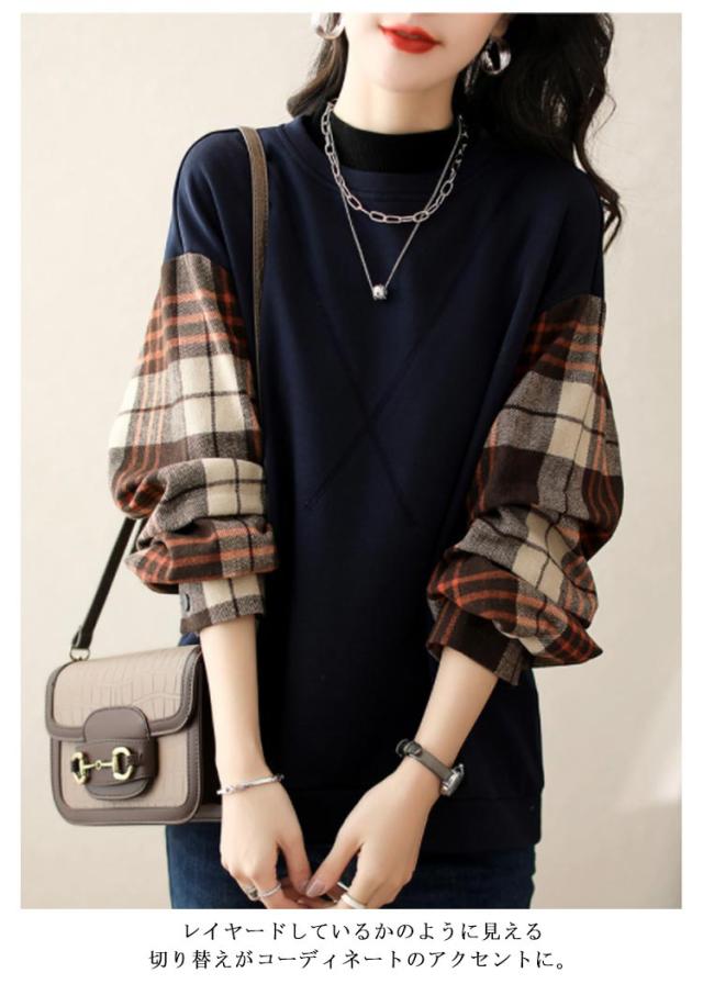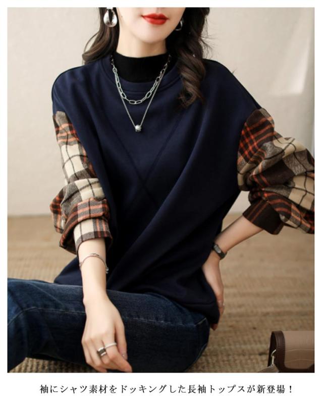 ブラウス 長袖 チェック トップス 切替ブラウス プルオーバー 秋 ドッキング トレーナー 異素材 切替 ブラウス 仕事 通勤 トップス 春 レディース 冬 ゆったり キレイめ レディース オフィス カジュアル ol 大人可愛い お洒落